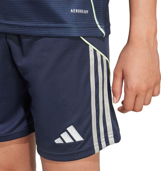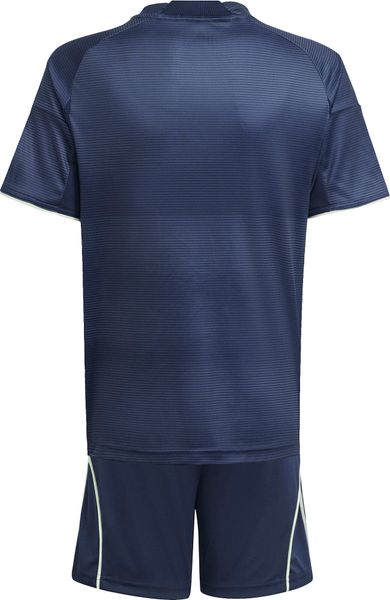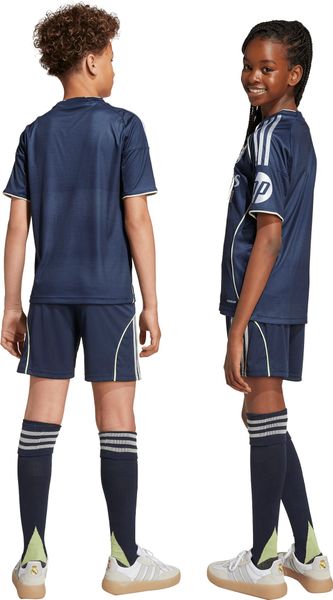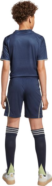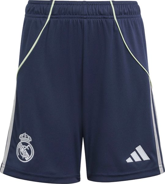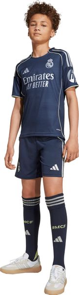 "Thanks to AEROREADY technology, your skin stays dry and comfortable, whether you are cheering on your idols from the stands or performing on the pitch yourself. The shorts are equipped with an elastic waistband for optimum freedom of movement. The set is completed with matching socks so that you can look like a pro from head to toe. The embroidered Real Madrid club logo rounds off the design and makes this kit a must-have for every young fan."