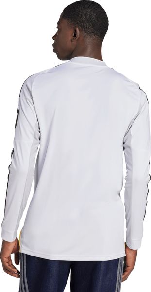 "Discover the new Real Madrid 25/26 long-sleeved home jersey from adidas, celebrating the majestic renovation of Bernabu00e9u Stadium. The design of this jersey draws on subtle shapes, textures and colors inspired by the stadium's long and legendary history. It is not only a symbol of tradition and pride, but also offers maximum comfort thanks to the moisture-regulating AEROREADY material. The slim cut and classic round neckline ensure an elegant fit. The embroidered Real Madrid club logo on the chest symbolizes the incomparable passion and dedication of the club and its fans. Made from 100% recycled polyester, this jersey is not only environmentally friendly, but also a must-have for any loyal fan who wants to show their support for the team in style."