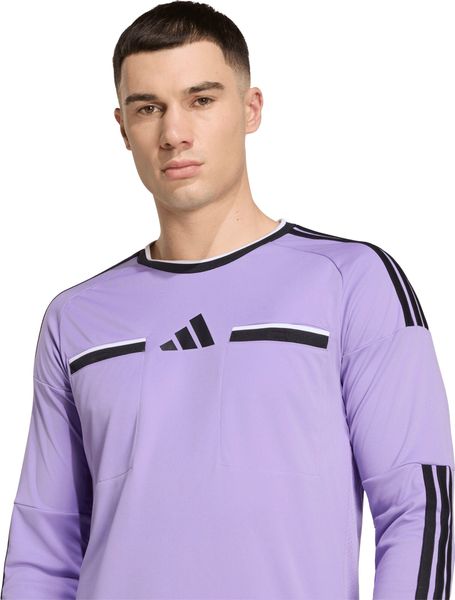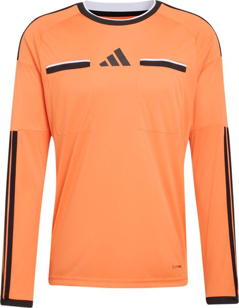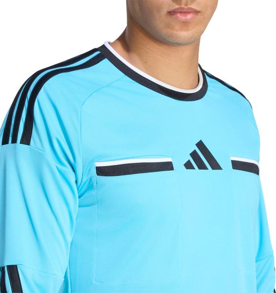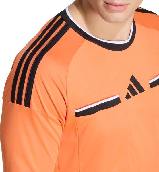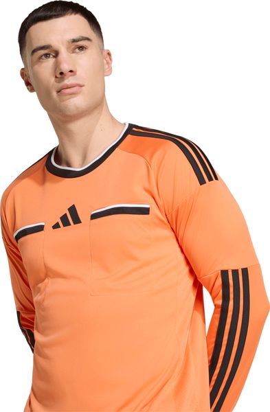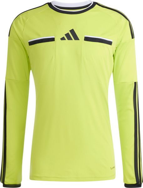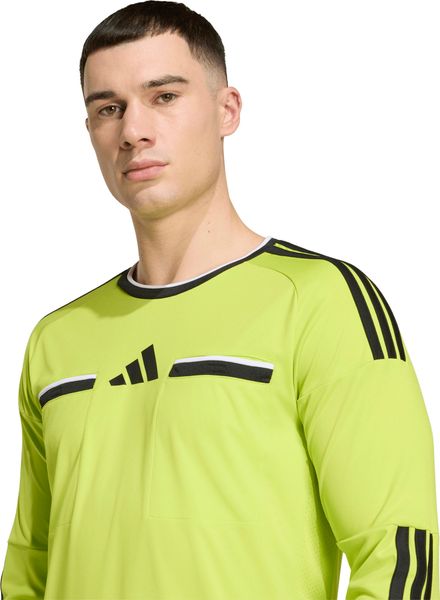 "The high-performance jersey is based on the findings of experienced FIFAreferees and uses high-quality materials in key areas. The stretchy underarm construction allows for unrestricted freedom of movement, while the practical chest pockets provide quick access to cards and guarantee a professional look. The iconic adidas 3stripes run across the shoulders and down the arms to reinforce your matchday signals. Whether you're whistling at a local game or officiating an international match, you can count on this jersey for comfort and performance."