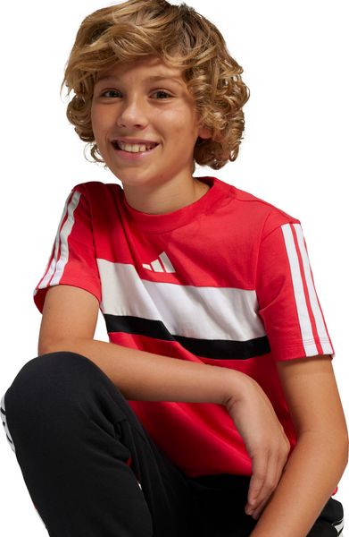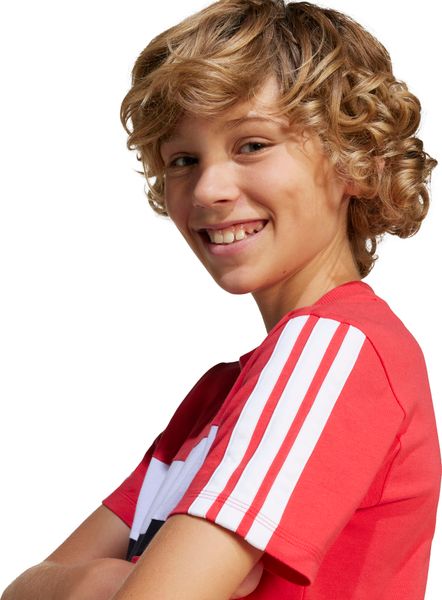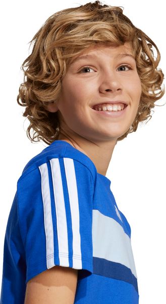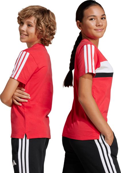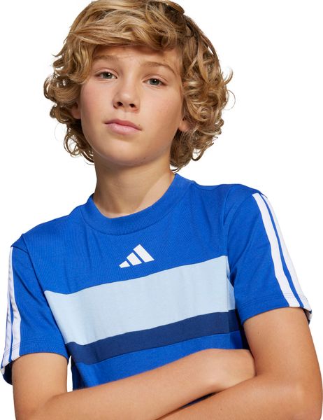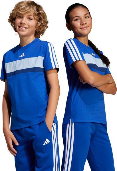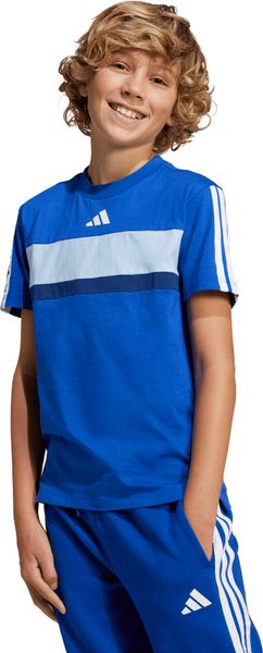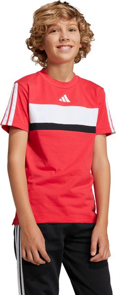 "The Seasonal Essentials Tiberio 3 Stripes T-shirt from adidas is the perfect piece of clothing for young fitness and training enthusiasts who don't want to miss out on a sporty look in everyday life. This T shirt impresses with its trendy retro design and the iconic 3 stripes on the sleeves, which have made adidas a symbol of sporty style and comfort for decades"