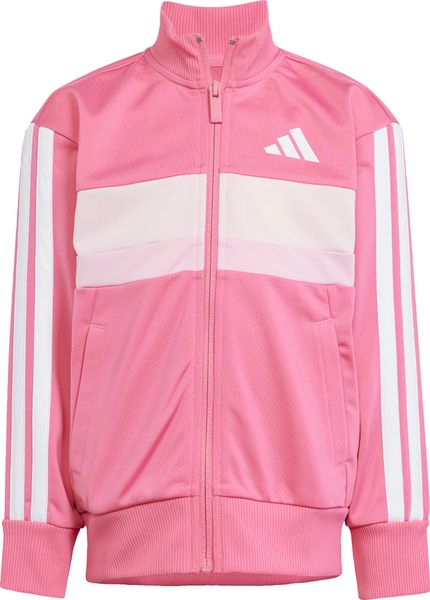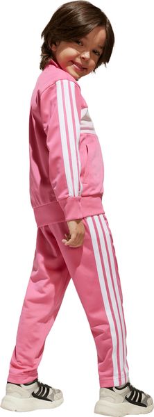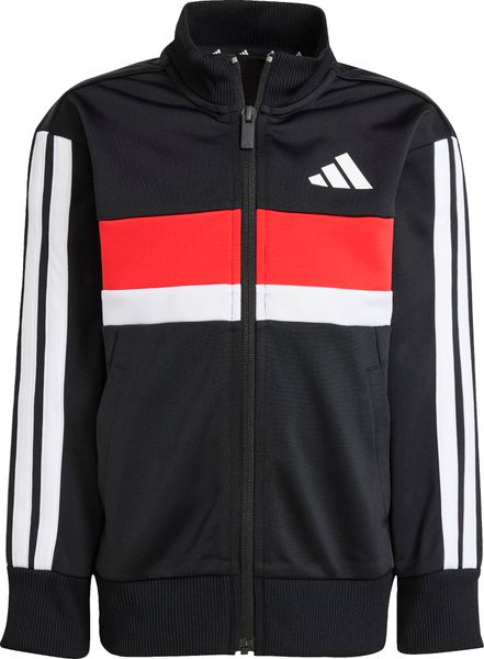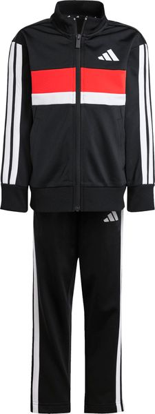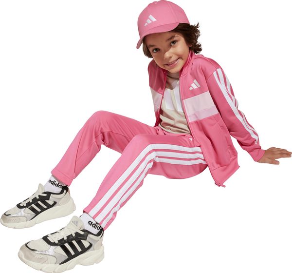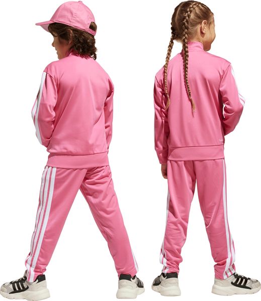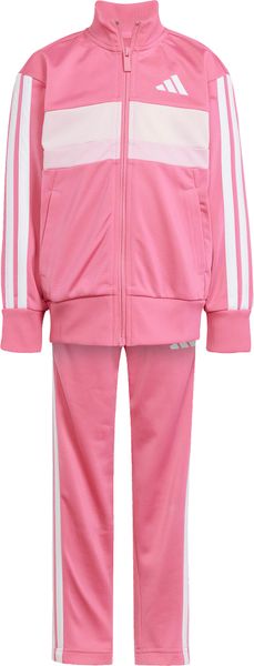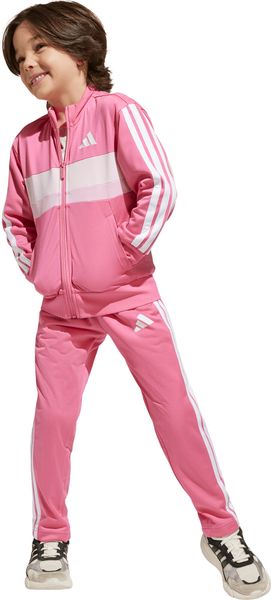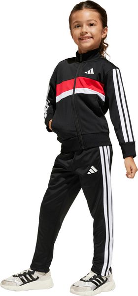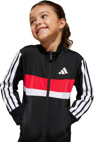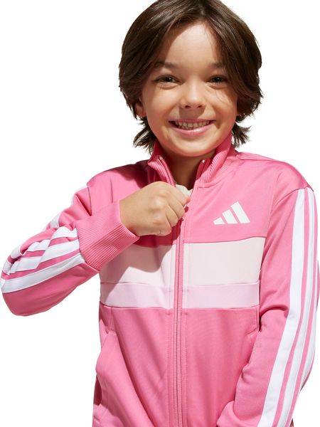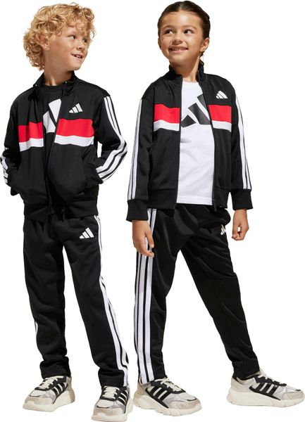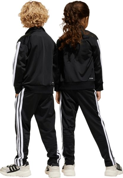"The Seasonal Essentials Tiberio 3 Stripes Tricot tracksuit from adidas is the perfect outfit for active kids who want to be stylish and comfortable both when playing outdoors and relaxing at home. The regular-fit suit consists of a top with a full-length zipper and stand-up collar and trousers with tapered legs. The iconic 3 stripes along the sleeves and legs give the set a sporty look that never goes out of style"