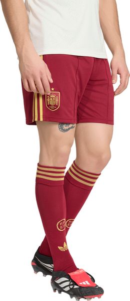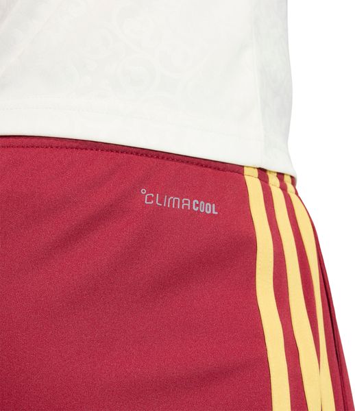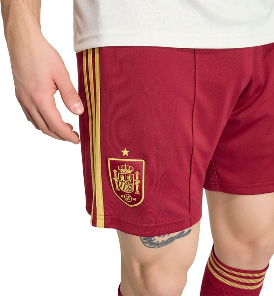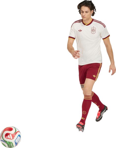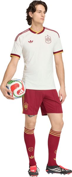 "Inspired by the elegance of classic literature, the adidas Spain 26 away shorts celebrate the rich tradition of the Spanish language with their intricate design details. Made from lightweight interlock material, these shorts have been specifically designed for outstanding performance on match days. They offer a regular fit that allows unrestricted freedom of movement on the pitch. Thanks to CLIMACOOL technology, the skin stays dry and cool as moisture is effectively wicked awayu2013 so you can concentrate fully on your gameu2013."