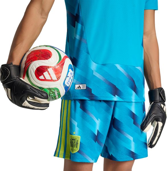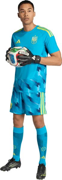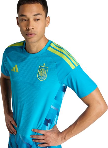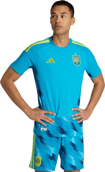 "The official Spain 26 Authentic Goalkeeper Home Jersey from adidas embodies the essence of Spanish elegance and the impressive successes of the Spanish football team. With its bright colors inspired by the Spanish flag, this jersey combines classic design elements with modern performance technologies. The slim cut ensures that it adapts perfectly to the goalkeeper's movements and allows maximum agility and full concentration during the game."