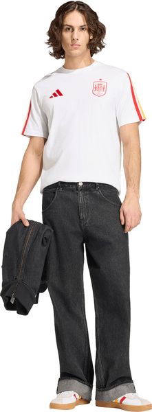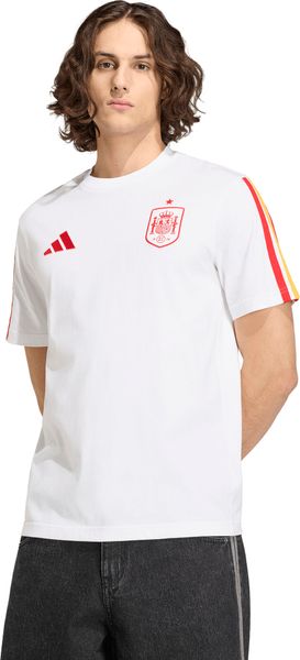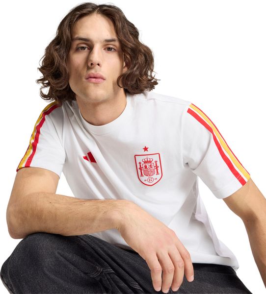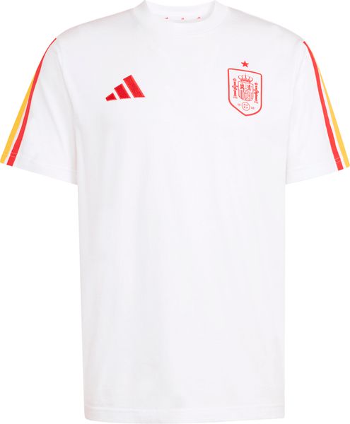 "Experience the incomparable energy of football culture with the Spain DNA T-shirt from adidas, which combines a stadium-ready look with sporty flair. This T-shirt is not only perfect for going to the stadium, but also for everyday wear and impresses with its modern, versatile design. The regular fit and classic round neckline ensure a casual yet stylish look."