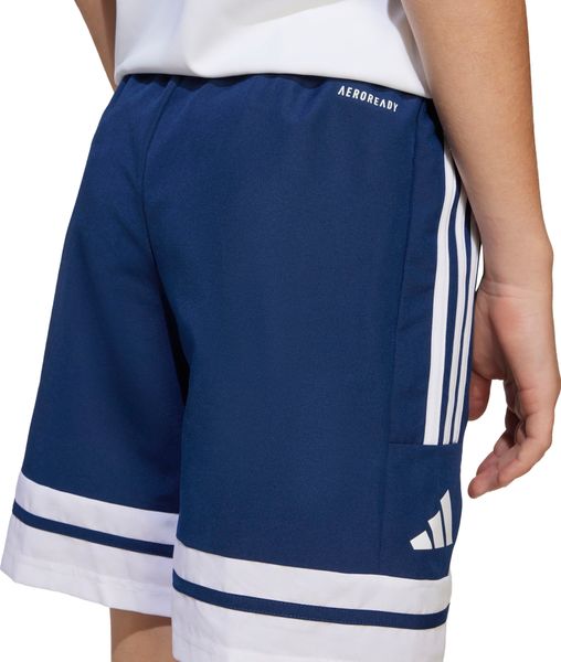 "Experience ultimate comfort and stylish design with the SQUADRA25 Downtime Woven Shorts for kids and teens from adidas. These shorts are the perfect choice for young athletes who want to emphasize their sporty style off the football pitch. Thanks to the moisture-absorbing AEROREADY technology, the shorts remain pleasantly dry, even after intensive training sessions. The regular cut and elastic waistband with drawstring ensure an optimal fit and freedom of movement"