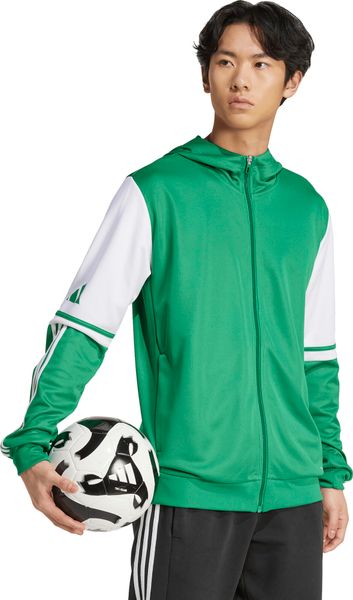 "Experience ultimate comfort and style with the SQUADRA25 hoody from adidas, perfect for sports activities and leisure time. This regular-fit hoody is equipped with a full-length zipper and a double-layer hood, making it a versatile companion in all weather conditions. The innovative AEROREADY technology ensures that moisture is effectively absorbed so that you always feel dry, whether you're jogging in the park or relaxing on the couch."