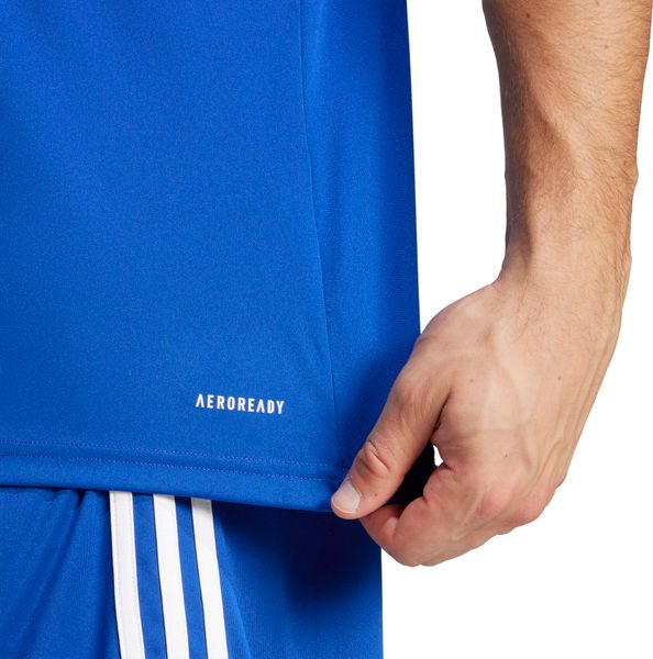 "Perfect for the football pitch: sustainable adidas jersey with AEROREADY technology and personalization option."