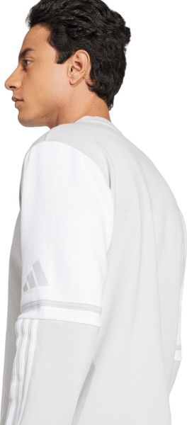 "With the SQUADRA25 Sweat Crew from adidas, you are not only well dressed on the training pitch, but also in your free time. The sweatshirt features a regular fit and a ribbed round neckline for a classic look. The high-quality material blend of 70% cotton and 30% recycled polyester makes it comfortable to wear, while the brushed inside and ribbed cuffs and hem provide additional comfort and warmth on cooler days."