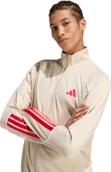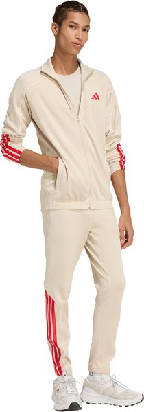"Made from 100% recycled polyester, adidas sets an example for sustainability without compromising on quality. The characteristic 3stripes along the lower legs are a clear statement of your enthusiasm for the adidas brand. Whether you wear the complete set or combine the jacket and trousers individually with other items in your wardrobe, this tracksuit gives you numerous stylingoptions and a great athleisurelook"