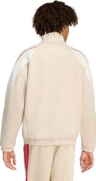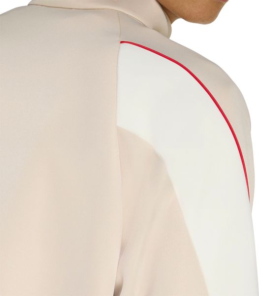 "Made from 67% recycled polyester and 33% cotton, the jacket is not only comfortable to wear, but also contributes to more sustainable consumption. The sporty interlock material with satin piping and eye-catching color blocking give the jacket a unique look that will impress both on and off the pitch."