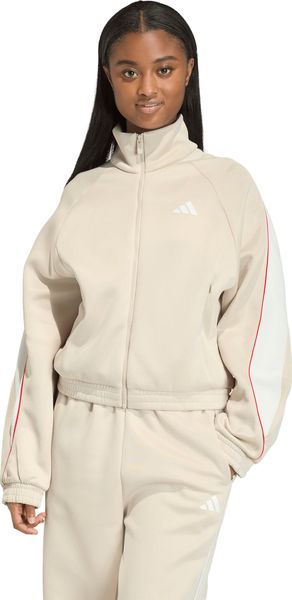 "The adidas Stadium Tracktop training jacket embodies the passion of every sports fan and is the perfect companion for fitness and training. Whether you're cheering on your team at the stadium or comfortably watching from home, this jacket offers you maximum comfort thanks to its soft knit and elegant satin piping. The loose fit ensures freedom of movement, while the zip fastening makes it easy to adjust. Practical zippered pockets offer enough space to safely stow your keys or smartphone. The iconic adidas 3-bar logo rounds off the stylish design. The jacket is made from 67% recycled polyester and 33% cotton, which makes it not only comfortable but also environmentally friendly"