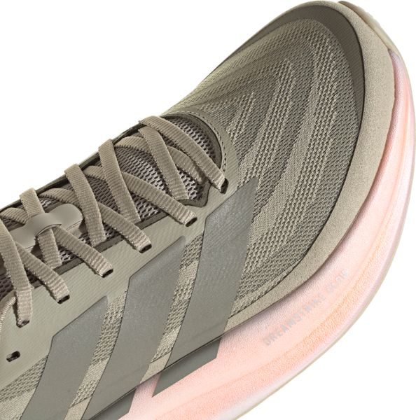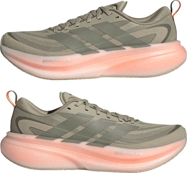 "The Supernova Glide is equipped with the innovative Dreamstrike Glow midsole, which provides soft cushioning and supports your movement. With a midsole drop of 8 mm and a weight of just 282 g, this shoe offers the perfect mix of lightness and stability. The cold cement construction contributes to the durability of the shoe, while the transparent rubber outsole provides excellent grip on various surfaces."