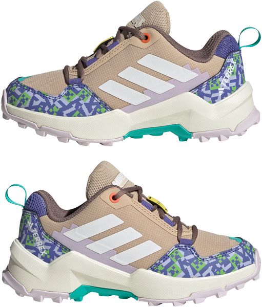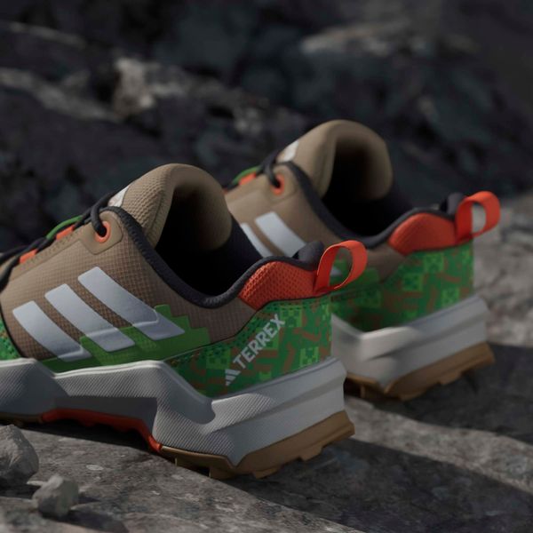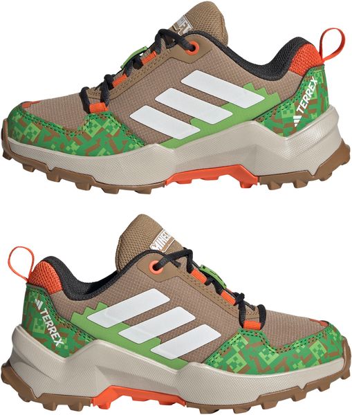 "The Adidas Minecraft Terrex AX4R hiking shoe is the ideal companion for young adventurers who want to explore the world around them. Inspired by the fascinating landscapes of the popular game Minecraft, this shoe not only offers an exciting design, but also the necessary functionality for outdooractivitiesu00e4ten. The shoe impresses with its regular fit and practical lace fastening, which ensures a secure fit and is easy to adjust, ideal for spontaneous discovery tours."