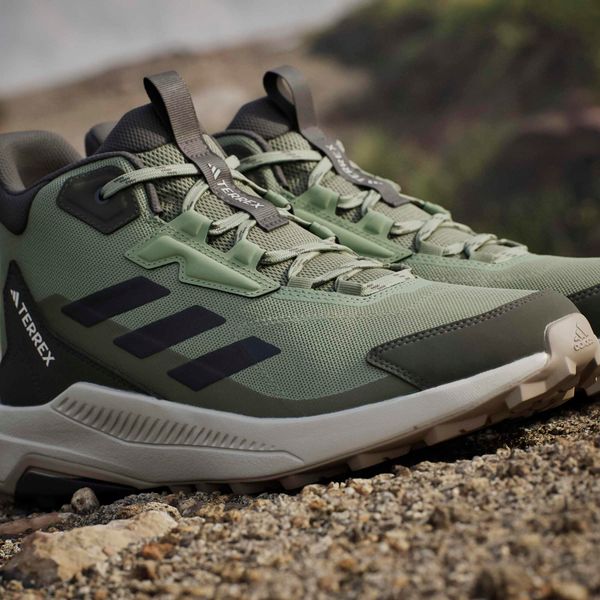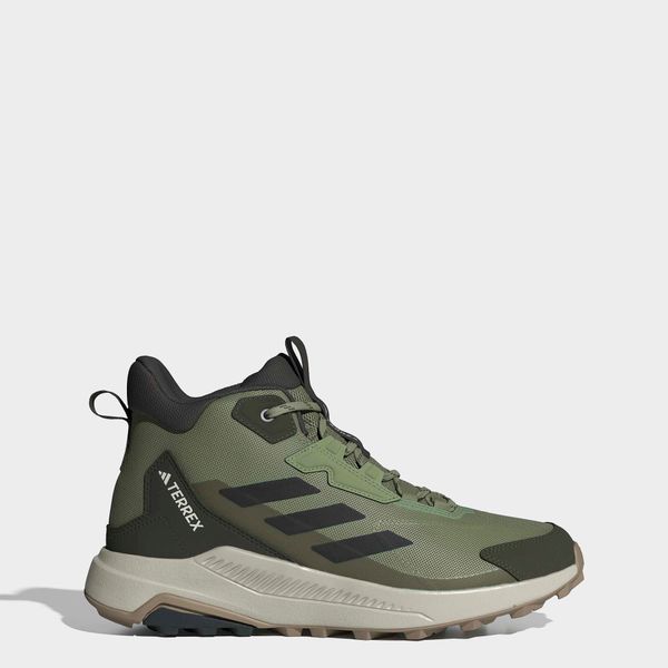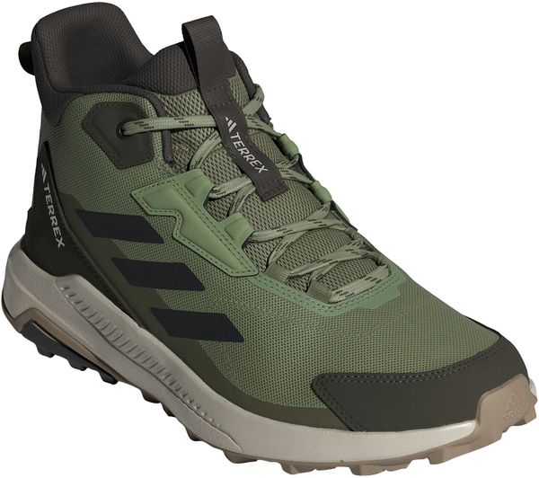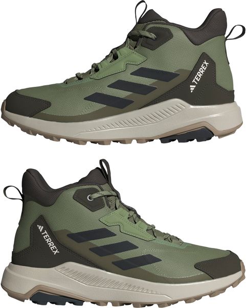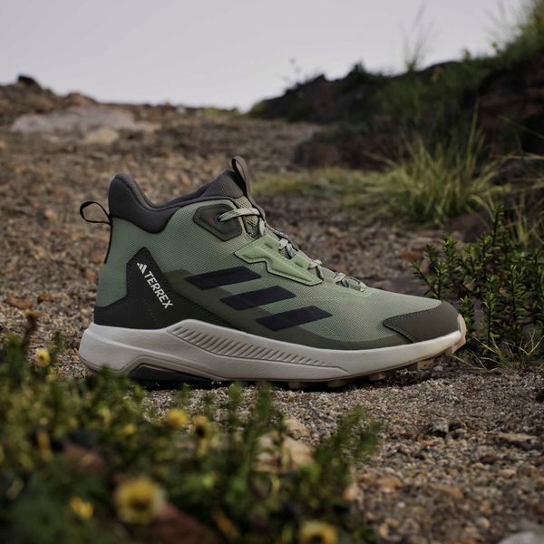 "The adidas Terrex Anylander Mid hiking boots are the ideal companion for anyone who wants to embark on a variety of hiking adventures. With their regular fit and secure lacing system, these shoes offer optimum support and comfort. The robust textile upper with a reinforced toe cap reliably protects your feet from stones and dirt. Inside, a pleasant textile lining ensures a comfortable feel, while the lightweight EVAmidsole provides springy cushioning with every step"