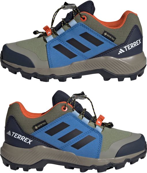 "The adidas Terrex Gore-tex hiking boot is the perfect companion for young adventurers who are out and about on forest trails as well as in the mountains. Equipped with a waterproof and breathable GORE-TEX membrane, the feet are guaranteed to stay dry. The robust outsole made from Continentalu2122 rubber offers exceptional grip on any surface, while the abrasion-resistant upper material with pre-shaped toe cap ensures optimum protection and durabilityu00e4."