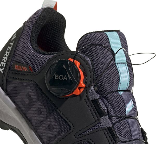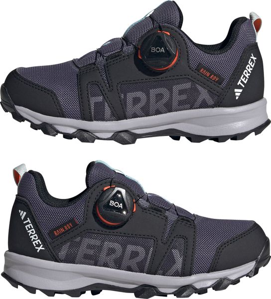 "The Terrex Agravic BOA RAIN.RDY trail running shoe from adidas Terrex is the ideal companion for young adventurers who don't want to be held back by adverse weather conditions. Whether hiking, speed hiking or runningu2013 this shoe offers optimum grip on any surface, whether wet, slippery or rockyu2013 thanks to the coarsely profiled Traxion outsole."