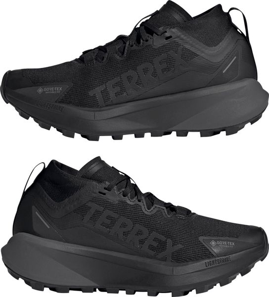 "Experience unparalleled support and comfort with the Terrex Agravic GTX trail running shoes from adidas Terrex. These shoes are specifically designed for speed hiking and demanding trail running adventures, featuring a robust GORE-TEXu00ae membrane to keep your feet dry even in wet and muddy conditions. The regular fit and breathable mesh upper with TPU overlays ensure a perfect fit and durability. The innovative GORE-TEX Invisible Fit membrane is seamlessly connected to the upper material and prevents the ingress of stones and dirt."