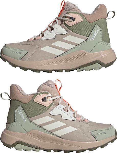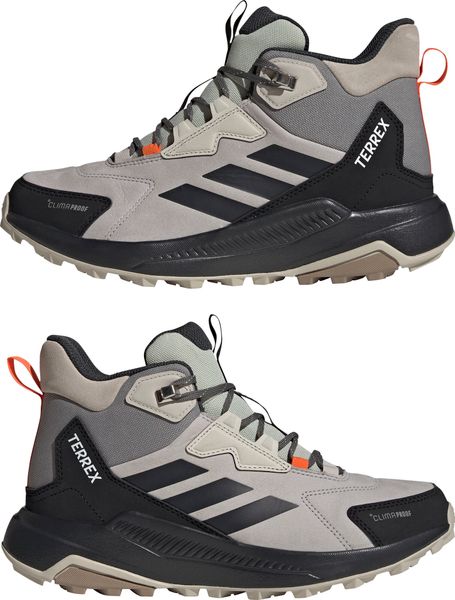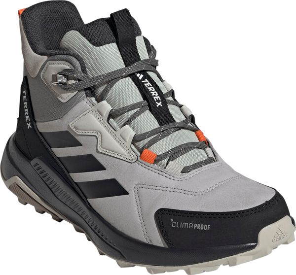 "The Terrex Anylander Leather Mid Climaproof hiking boot from adidas Terrex is the ideal companion for anyone who loves the outdoors and wants to move on a wide variety of terrain. This hiking shoe combines durability and comfort thanks to its robust leather and textile upper, which offers a soft feel. The regular fit and laces ensure a secure hold, while the midcut design provides additional stability so you can move effortlessly through challenging terrain"