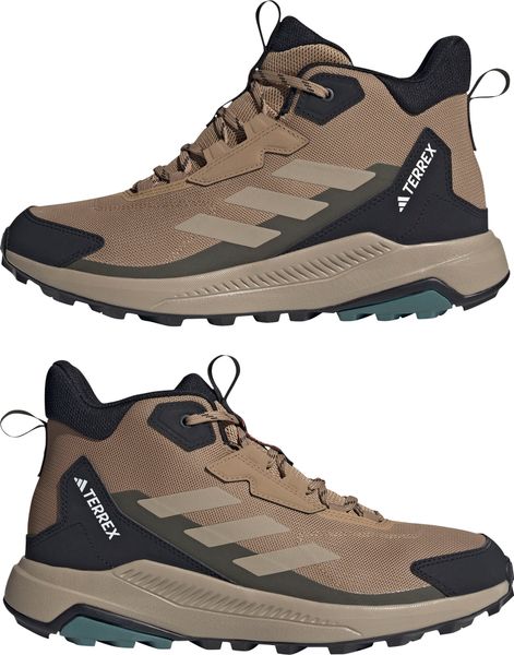"The Terrex Anylander Mid hiking boots from adidas Terrex are the perfect choice for all hiking enthusiasts who value comfort, stability and sustainability. With their regular fit and practical lacing system, they offer optimum support and an individual adjustment to the foot. The textile upper is equipped with a reinforced toe cap that offers additional protection on demanding trails"