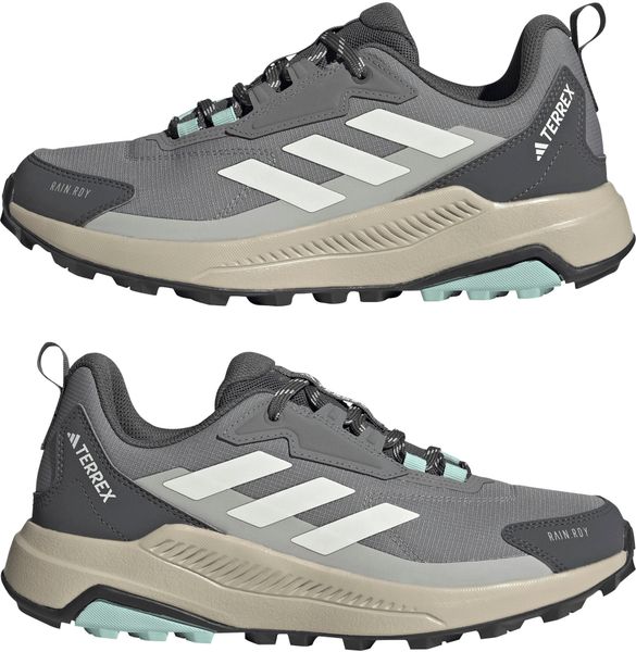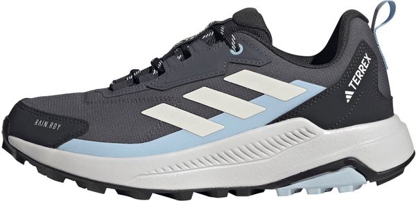 "Experience nature to the fullest with the Terrex Anylander RAIN.RDY hiking shoes from adidas Terrex. These shoes are the perfect choice for anyone looking for comfort and protection for both hiking and work. The mid-height upper provides additional support in the ankle area, while the cushioning EVAmidsole ensures long-lasting comfort. RAIN.RDY technology and the tongue connected to the upper work together to keep your feet dry and comfortable even in wet weather"