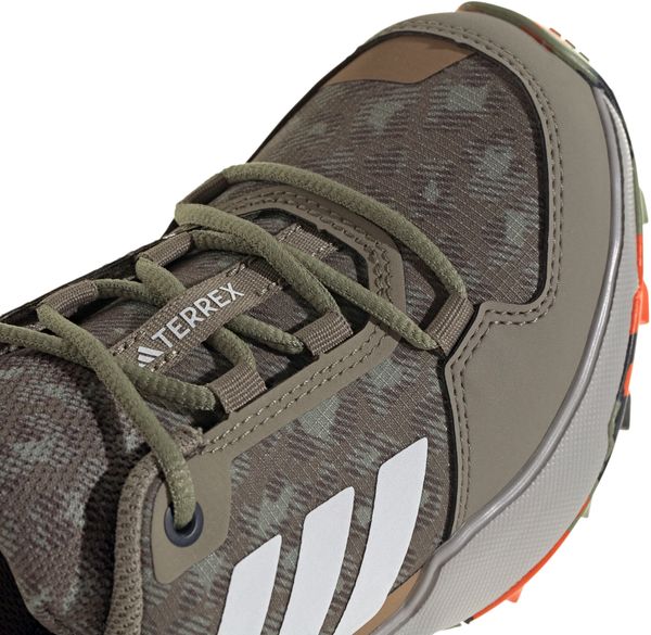 "The Terrex Ax4r features a textile upper with protective synthetic overlays and offers a regular fit with laces that provide a secure fit. With a weight of just 193.25 g and a drop of 8 mm, this shoe is light and flexible enough not to slow down children's urge to move."