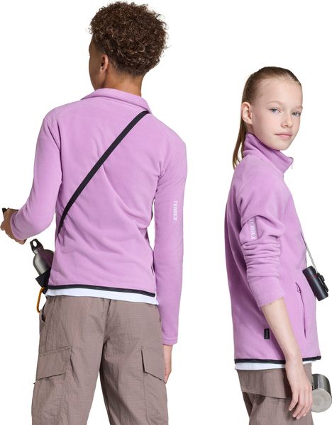 "The Terrex Kids Multi fleece jacket from adidas Terrex is the perfect choice for little explorers who like to be active outdoors. With its regular fit and full-length zipper, it not only offers comfort, but also flexibility in any movement. The polar fleece material, made from 100% recycled polyester, ensures a cosy, soft feel and is also easy to care for, so the jacket stays in top shape even after frequent washing"