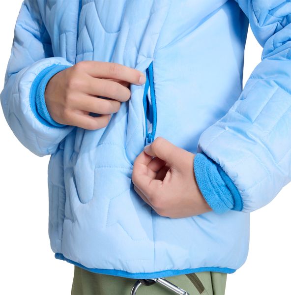 "Warm outdoor jacket for children with CLIMAWARM technology and sustainable ripstop material for adventures in the great outdoors."