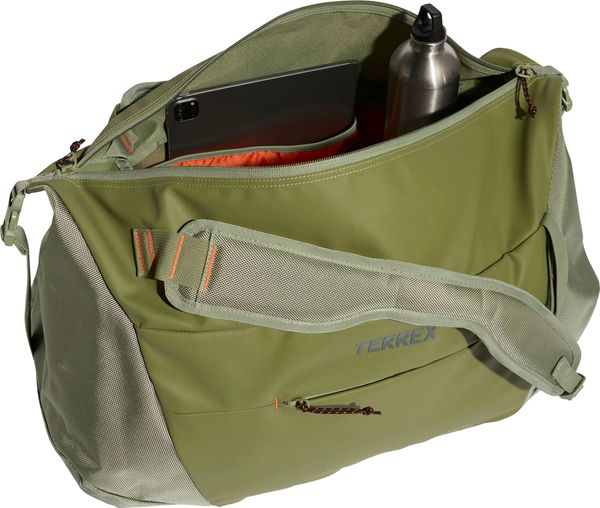 "The bag not only impresses with its functionality, but also with its stylish design, which reflects the typical adidas Terrex look. Whether for everyday use or when traveling, with the Terrex Multi Duffelbag you are well equipped to master any challenge. The robust nylon base plate provides additional stability and durability so that you will enjoy your duffel bag for a long time"