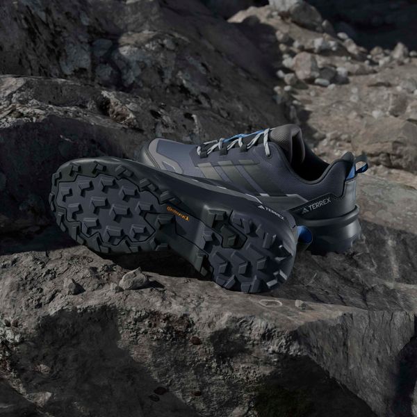 "The Continentalu2122 rubber outsole guarantees excellent grip on a wide variety of surfaces, whether on slippery roots, stony paths or solid ground. These properties make the Terrex Skychaser AX5 an indispensable companion for anyone looking for adventure in the great outdoors. Come rain or shine, with these shoes you are well equipped to master any challenge."