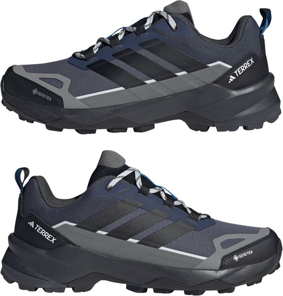 "Experience the ultimate hiking experience with the Terrex Skychaser AX5 Gore-tex hiking shoes from adidas Terrex. These shoes are specially designed for fast movements in demanding terrain and offer a perfect combination of lightness and stability. The durable ripstop upper with overlays ensures durability and protection, while the waterproof and breathable GORE-TEX membrane keeps your feet dry even on wet trails."