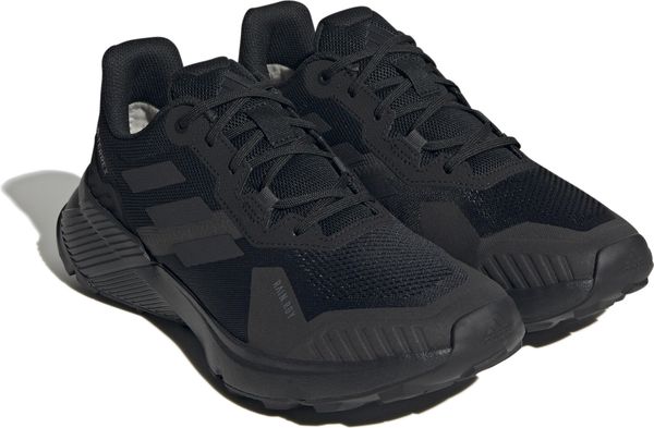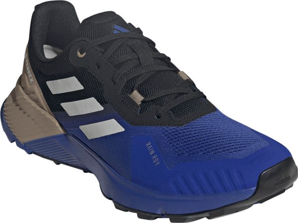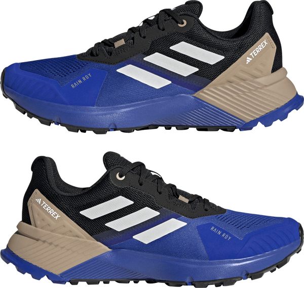 "Adventure off the beaten track with the Terrex Soulstride RAIN.RDY Trail Running Shoes from adidas Terrex. These versatile shoes are ideal for speed hiking and running and offer a regular fit with a classic fit. The mesh upper, combined with the innovative RAIN.RDY technology, ensures that your feet stay dry and comfortable even in wet weather. The lightweight EVAmidsole provides pleasant cushioning, while the 10 mm drop supports a dynamic running motion."