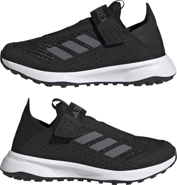 "The Terrex Voyager 21 Slipon Travel Shoes for kids from adidas Terrex are the ideal companion for little adventurers, whether hiking or for everyday wear. These shoes offer quick and easy access thanks to their practical slip-on design with Velcro fastening. The open-pored mesh upper ensures excellent breathability and keeps the feet pleasantly cool even on hot days, thanks to the innovative HEAT.RDY technology."