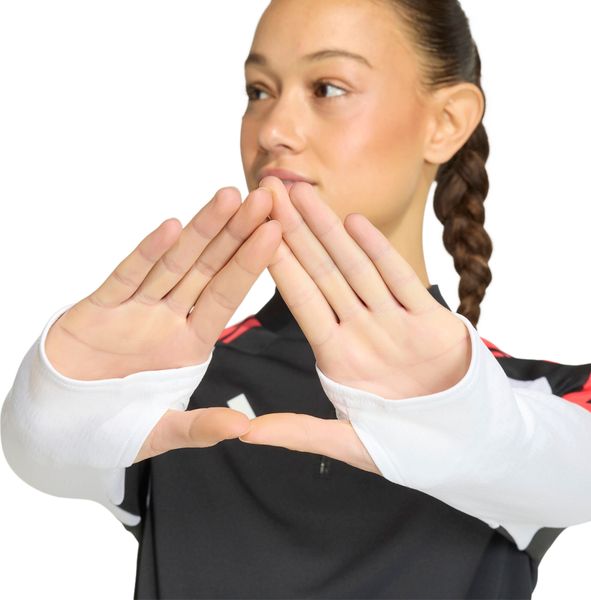 "The strategically placed meshbreast inserts ensure excellent ventilation so that you stay fresh even during intensive training sessions. The practical zipper at the front makes it easy to put on and take off, while the thumb holes ensure that the sleeves always stay in place. With a slim fit and the iconic 3stripes branding, this training top offers not only functionality but also styleu2013 perfect for your training on and off the pitch. Made from 100% recycled polyester, adidas is also committed to sustainability and environmental awareness."