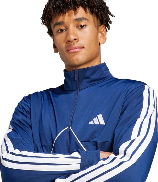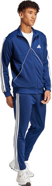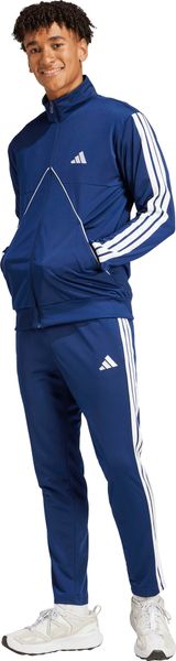 "The Tiro Inspired Tracksuit from adidas combines sporty retro charm with modern functionalityu00e4t and is perfect for fitness and training. Inspired by the classic Tiro design, the set consists of a top with a full-length zip and stand-up collar as well as trousers with a tapered leg shape. Thanks to the slightly shimmering jersey material made from 100% recycled polyester, the suit feels pleasantly soft on the skin and is also environmentally friendly. Side pockets in the top offer practical storage space, while ribbed details on the cuffs and hem ensure a secure fit. The trousers are equipped with an elastic waistband and drawstring for a customized fit. With this tracksuit, adidas focuses on sustainability by reusing existing materials to reduce the carbon footprint and minimize dependence on non-renewable resources."