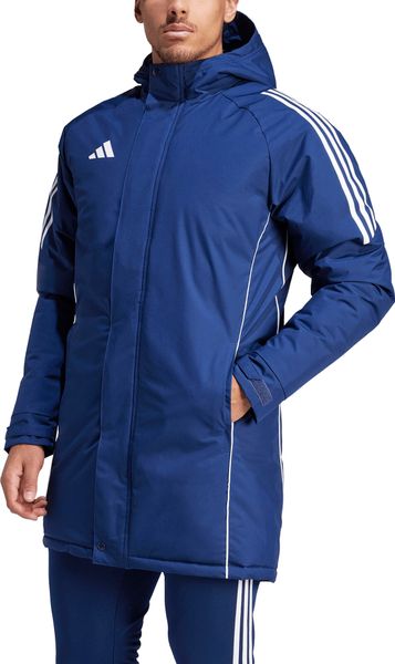 "The TIRO24 Stadium Parka is not only functional, but also a real eye-catcher. Its clean look makes it a versatile companion that can be easily combined with any leisureoutfit. Made from at least 70% recycled materials, this parka contributes to reducing waste and the carbon footprint and supports adidas in the sustainable use of resources."