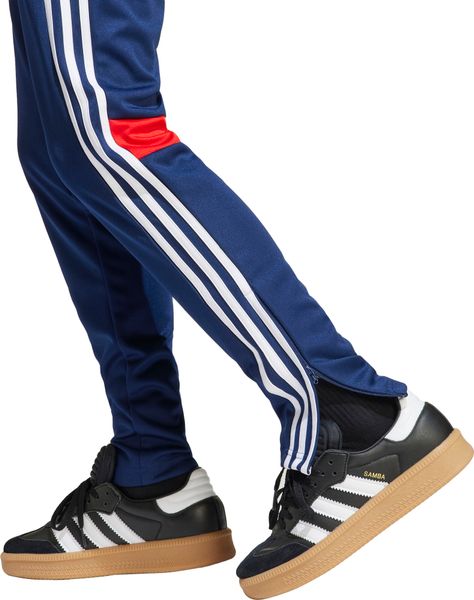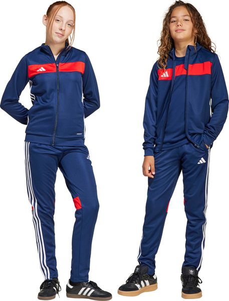 "Step up your style off the pitch with the TIRO25 Essentials tracksuit for kids, inspired by the passion for football. This trendy adidas suit not only offers a slim fit, but also combines functionality with a fashionable look. The jacket features a full-length zipper and an elegant stand-up collar, while ribbed cuffs and a hem provide additional comfort. The trousers are equipped with an elastic waistband and drawstring to guarantee a perfect fit."