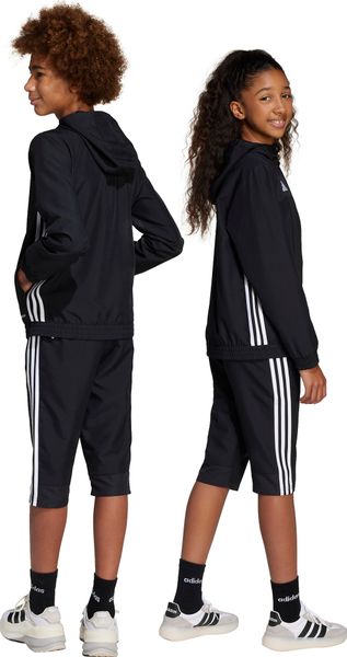 "The TIRO25 Essentials Woven 3/4 Pants for kids from adidas combine sporty style with functional everyday features. Inspired by classic football clothing, these pants offer an ideal blend of comfort and freedom of movement. Made from 100% recycled polyester, they contribute to waste reduction and a smaller carbon footprint. The moisture-absorbing AEROREADY technology ensures that the skin stays dry even during intense activity. The elasticated waistband with drawstring ensures an individual fit, while the practical zipped pockets offer space for small items"