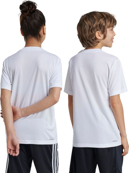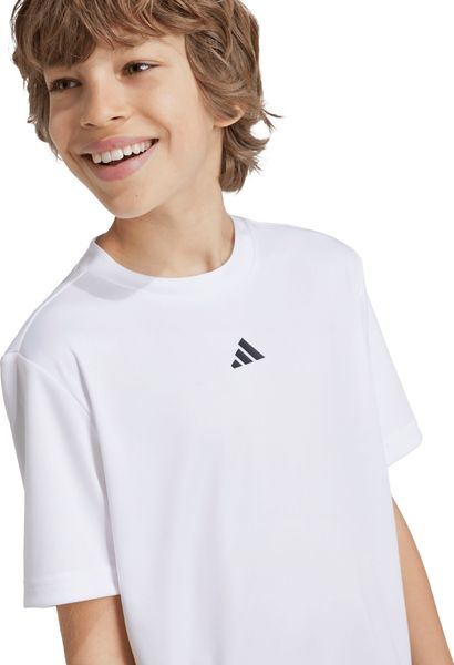 "This T shirt for kids and teens is the ideal companion for every fitness and training experience. With a regular fit and ribbed crew neck, it offers optimum comfort and freedom of movement. The moisture-absorbing AEROREADY technology ensures that you stay pleasantly dry even during intensive training, while the strategically placed mesh inserts on the back increase breathability and ensure refreshing air circulation."