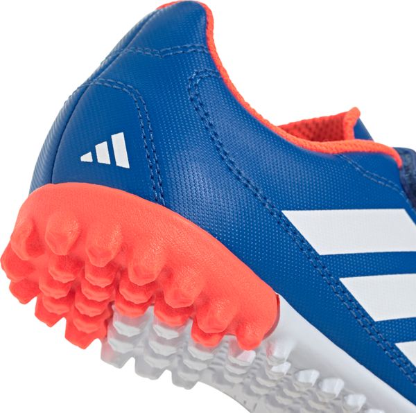 "Thanks to the practical Velcro fastener, the shoe is easy to put on and take off, while the padded heel provides additional comfort and a secure hold even during fast sprints and abrupt changes of direction. The textile lining offers a pleasant feel, while the rubber outsole with grippy tread provides excellent traction on the pitch"