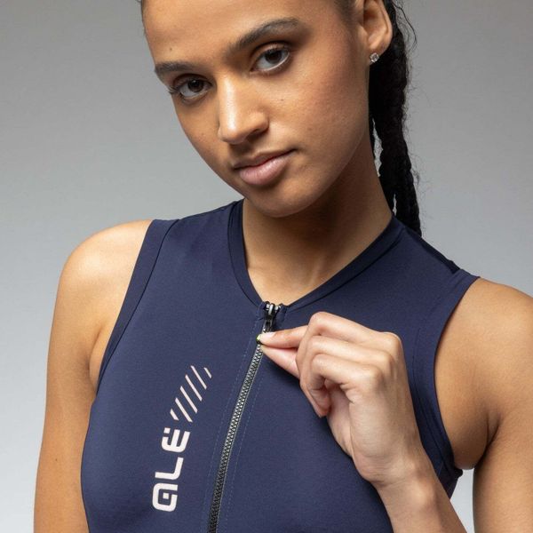 Women's sleeveless cycling jersey with UV protection, reflective inserts and practical back pockets for maximum freedom of movement.