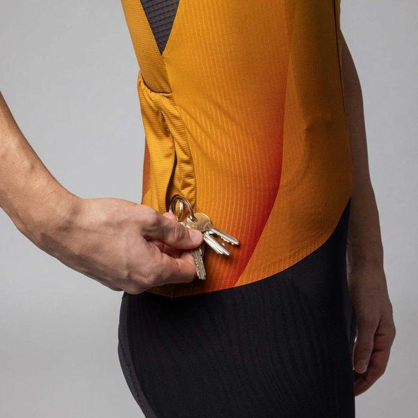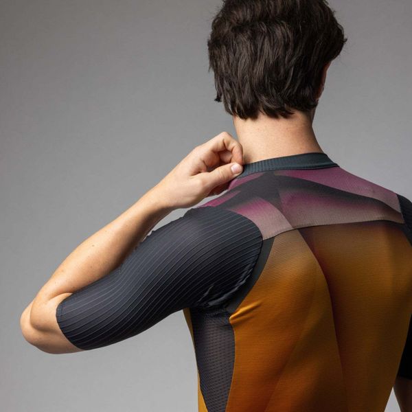 Men's cycling jersey for hot days with quick-drying fabric, high aerodynamics and practical back pockets.