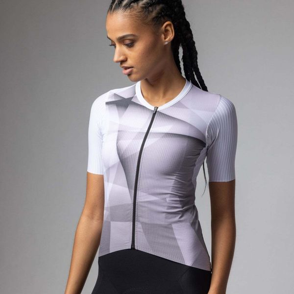 Ergonomic jersey for women with an innovative material mix, UV protection and practical pockets for hot cycling days.