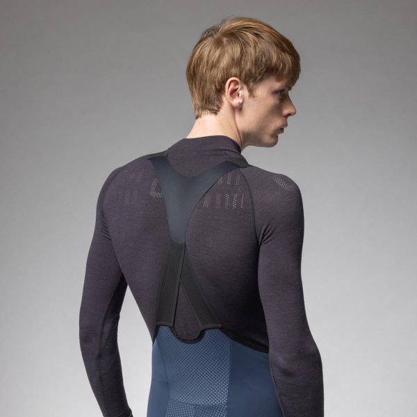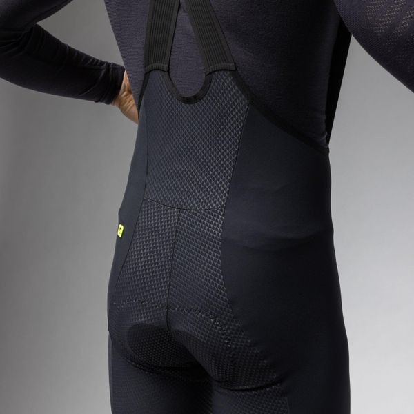 "The Thermo-Snake fabric is characterized by a special calendering in the crotch area, which increases adhesion to the saddle and at the same time provides a light massage during the ride. The X-Air Bib braces are designed to minimize the thickness at the back and provide more stability. The lasercut at the leg end avoids unnecessary thickness and makes it easier to put on overshoes, which is particularly beneficial in changing weather conditions"