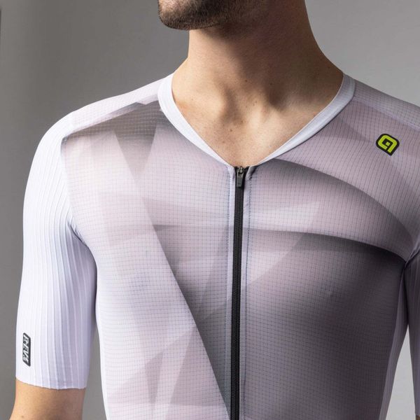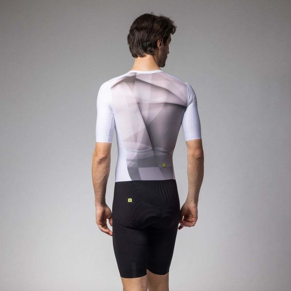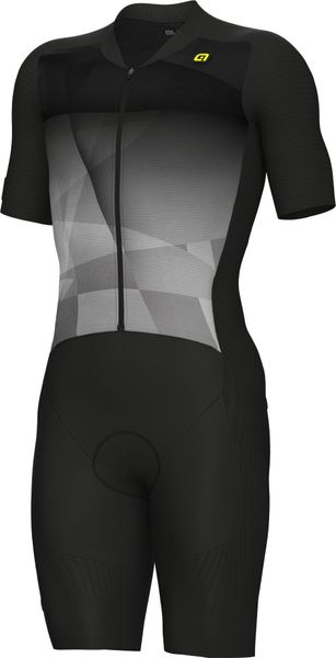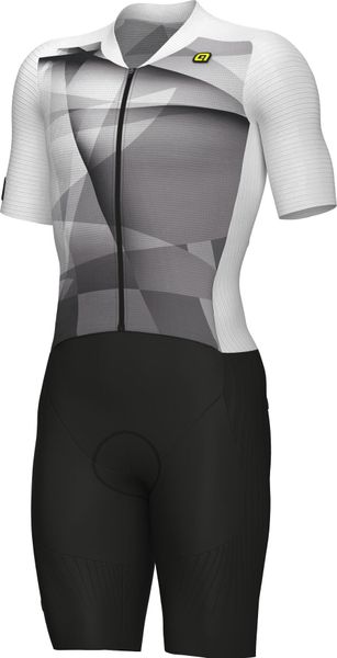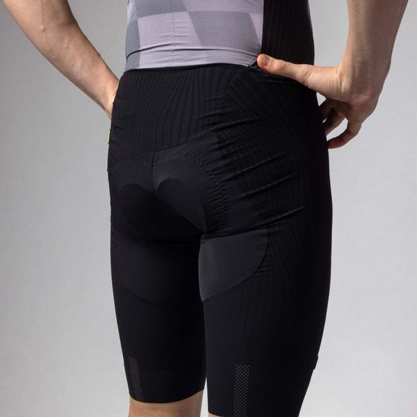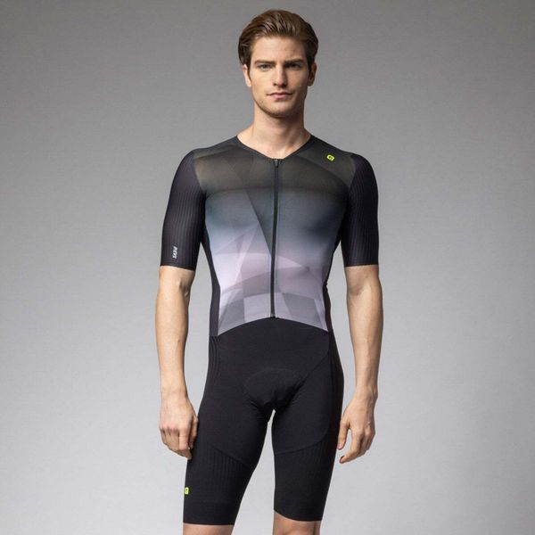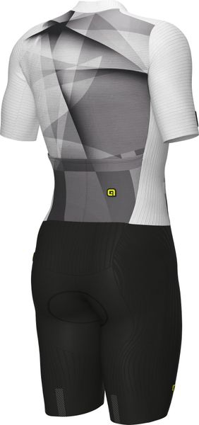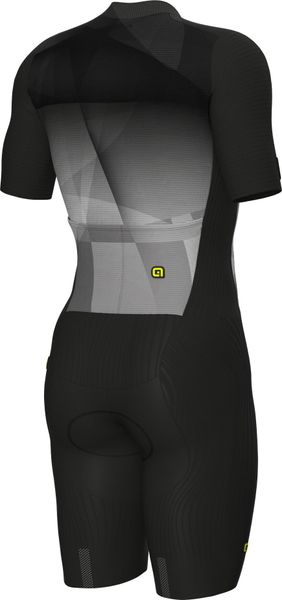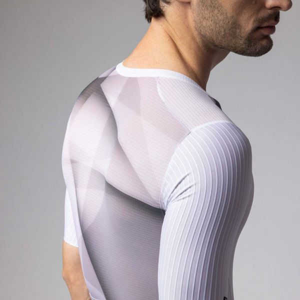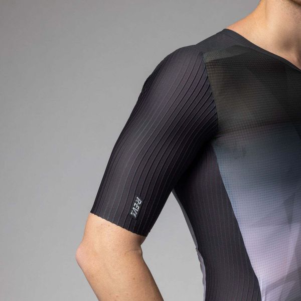 "The race for aerodynamics is won by the WATT 3.6 one-piece, a further development of the trunks.6 of the same name. Ergonomic features include the full-length front zip, the two comfortable back pockets and the raw-cut sleeves with channel effect. But what really sets this skinsuit apart is its exclusive 3Dtextured Graded 3.6 fabric with fatigue-balancing compression that prioritizes the rider's power transmission by stimulating and enhancing muscle performance."