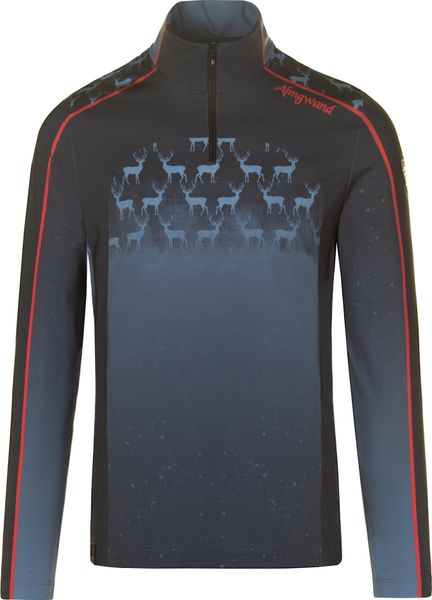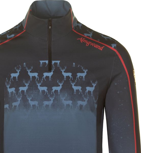 "The sporty look of the long sleeve is rounded off by a practical zipper on the collar and a fashionable deer print that ensures a stylish appearance. The shirt is specially designed for men and combines functionality with an appealing design."