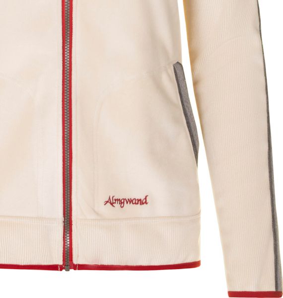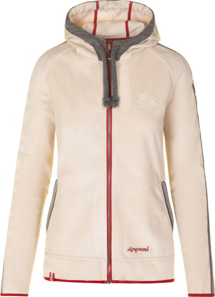 "The Peiderspitze hooded jacket from Almgwand is the perfect choice for women who value both style and functionality. Made from high-quality wool, this jacket offers excellent warmth and a cozy feel, ideal for hiking or as an additional layer of warmth in winter. The slightly heavier fleecequalityu00e4t fits snugly against the skin, while elasticated edging and an adjustable hood underline the sporty character"