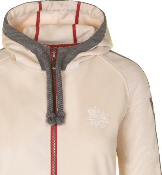 "A subtle Edelweiu00df embroidery adorns the front, and fine wool trims on the sleeves and pocket openings give the jacket a special charm. These details, together with the brand-typical genuine staghorn-Anhu00e4ngern on the front-Reiu00dfverschluss, make the Peiderspitze a real eye-catcher. Whether for hiking, shopping or everyday wearu2013 this jacket is a versatile companion for the whole yearu2013."