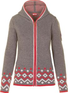 "The Steinbergalm cardigan from Almgwand is a versatile piece of clothing that impresses both in everyday life and when skiing. The sporty diamond pattern on the lengths and the subtle pattern in the hood give the jacket a unique charm. The material blend with a high wool content not only makes it comfortable to wear, but also keeps you wonderfully warm, making it the ideal choice for cold days."