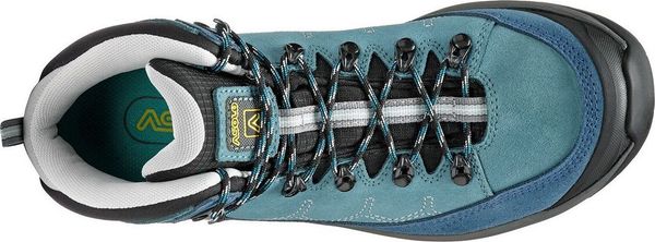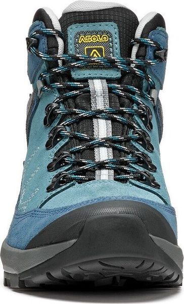 "The two-component EVAmidsole provides excellent support, stability and cushioning, which is particularly beneficial on longer tours. The Asolo/Vibram outsole with self-cleaning design and MegaGrip compound offers exceptional grip and traction on wet and dry surfaces, allowing you to move safely and confidently. A TPUtoe cap also protects against punctures and abrasion."