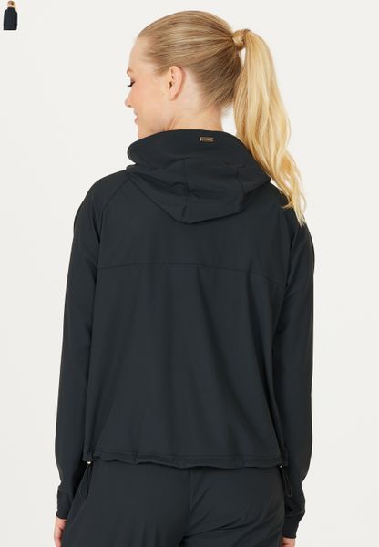 Komfortable Damen-Kapuzenjacke mit Stretch, verstellbarer Kapuze und Saum, perfekt für aktive und entspannte Tage.
